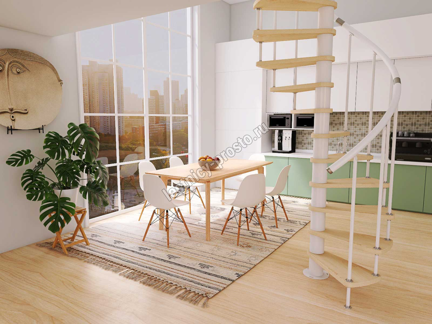 Винтовая лестница Prosto Spiral White D140см, h260.5-304.6 см, бук