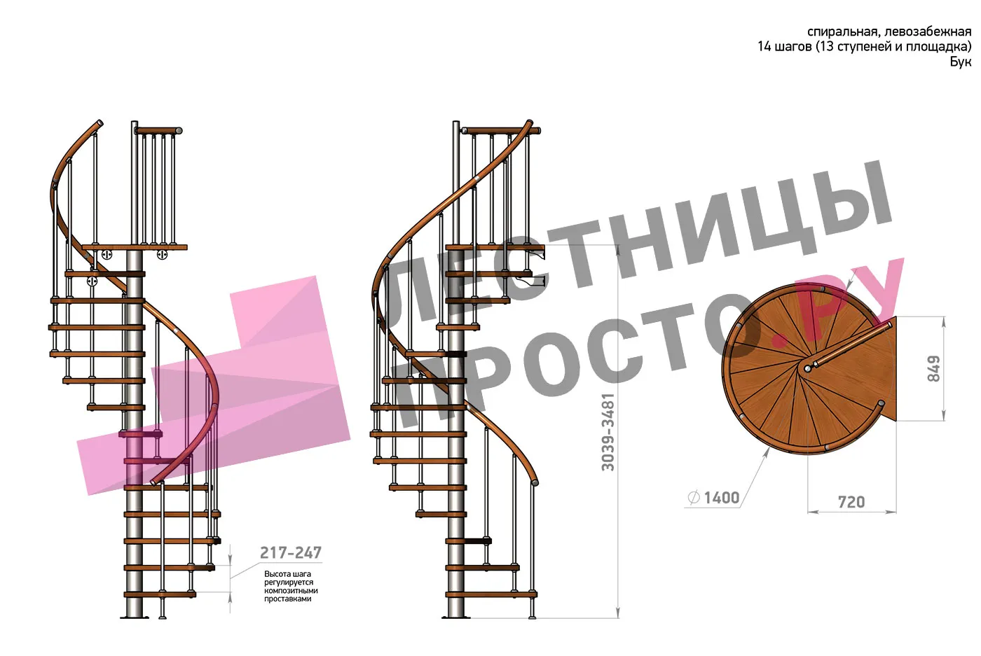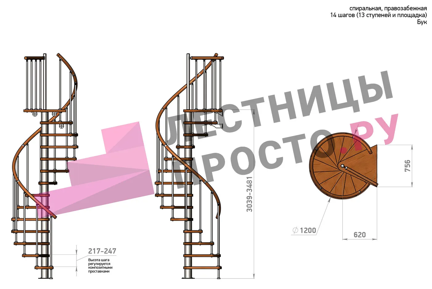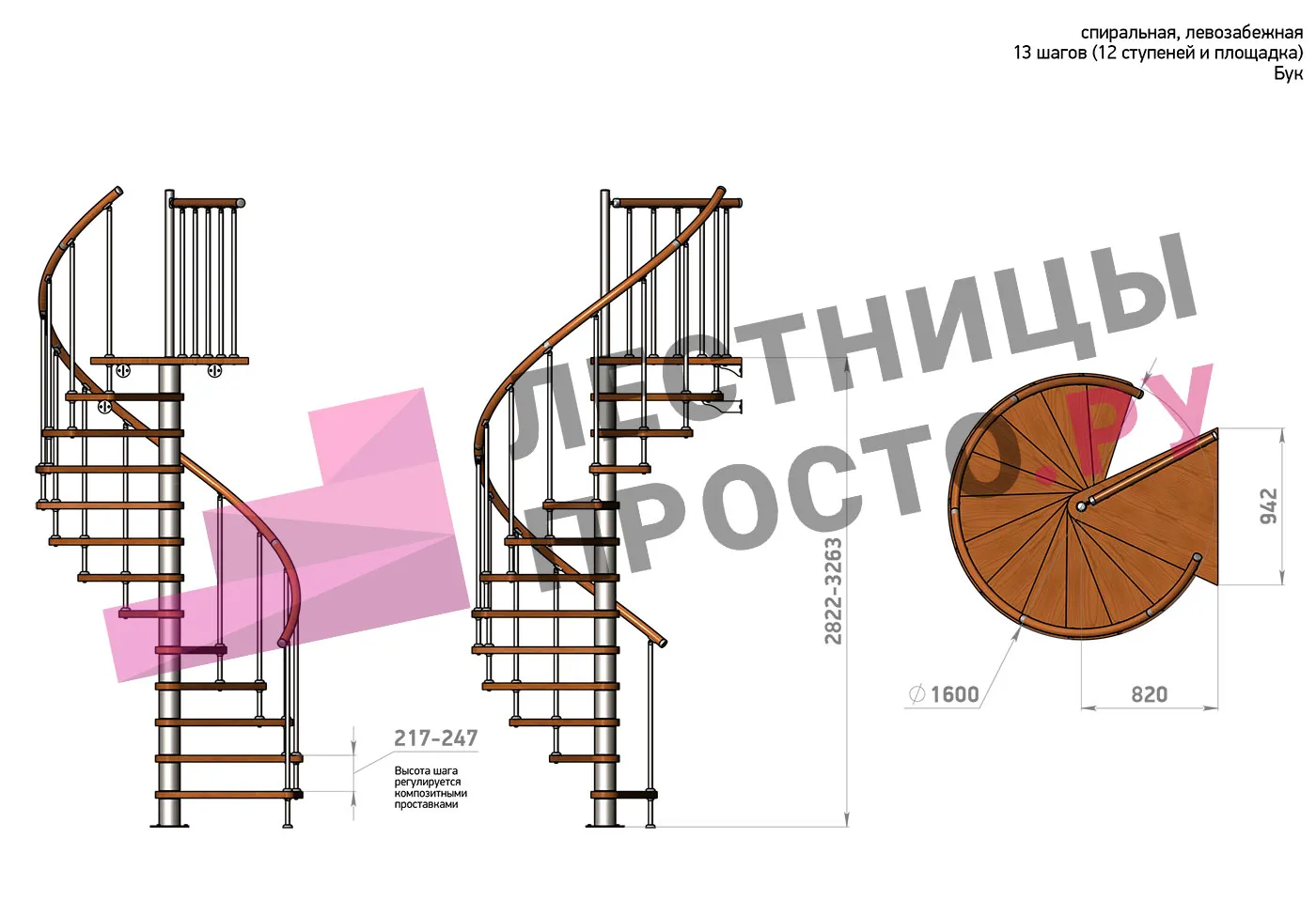 Высота ступеней регулируется с шагом 3 мм. в пределах 217-247 мм., благодаря чему, лестница прекрасно подгоняется под необходимую высоту.