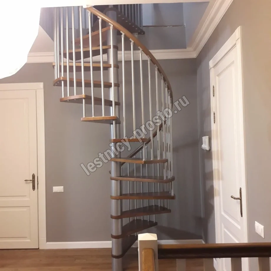 Винтовая лестница SPIRAL WOOD d160 см, серебро, лакированный бук
