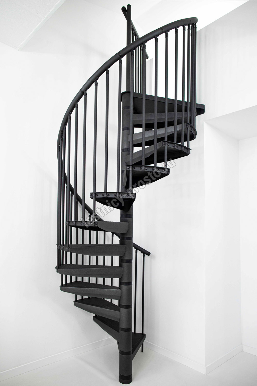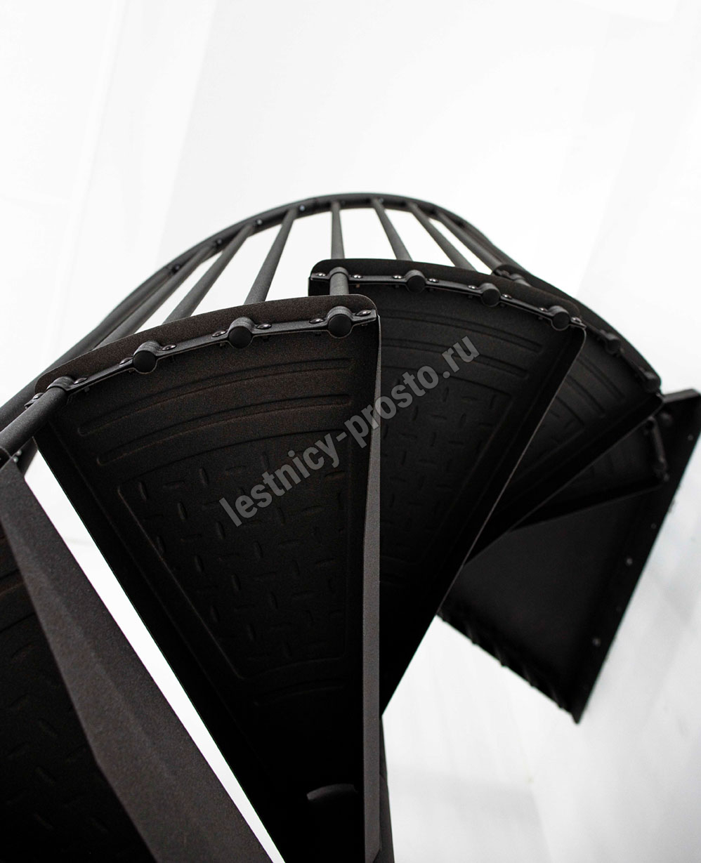По запросу возможно конфигурирование набора до максимальной высоты 346 см. Все металлические элементы покрыты порошковой краской высочайшего качества графитового цвета, устойчивого к царапинам и механическим повреждениям. Профилированные нескользящие ступени из листового металла в клетку, снабженные небольшим подступенком для большей безопасности. Алюминиевые поручни с высококачественным порошковым покрытием. Напольные перила по запросу, прямые или круглые.