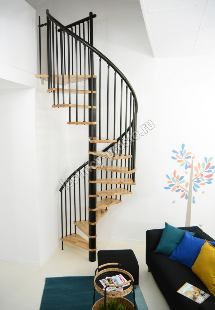 Винтовая лестница SPIRAL EFFECT d120 см, черная, лакированный бук