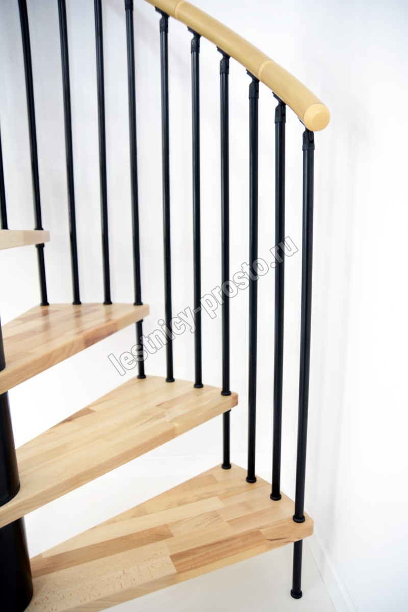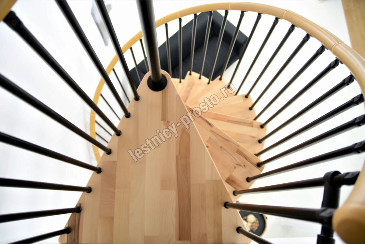 Винтовая лестница SPIRAL WOOD d120 см. чёрная, лакированный дуб
