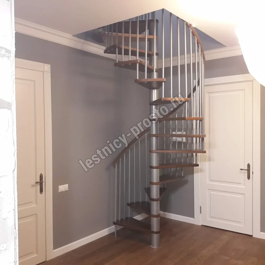 Лестница представлена в двух вариантах: с поворотом направо и с поворотом налево. Благодаря возможности регулировать высоту шага с помощью пластиковых вставок (входят в базовый комплект), высоту лестницы можно варьировать в пределах от 2860 до 3090 мм. Кроме того, купив дополнительную секцию для этой лестницы, можно поднять высоту до 3320 мм. Поручень изготовлен из массива бука в тон ступеням. Ступени и поручень покрыты износостойким защитным лаком.