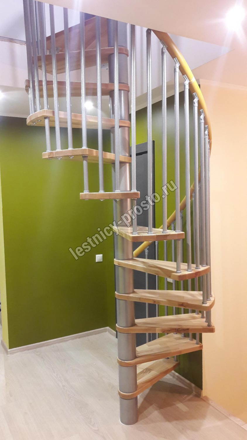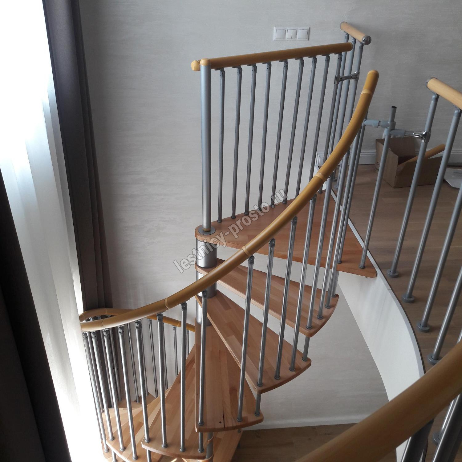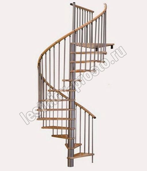 Винтовая лестница SPIRAL WOOD d160 см, серебро, лакированный дуб