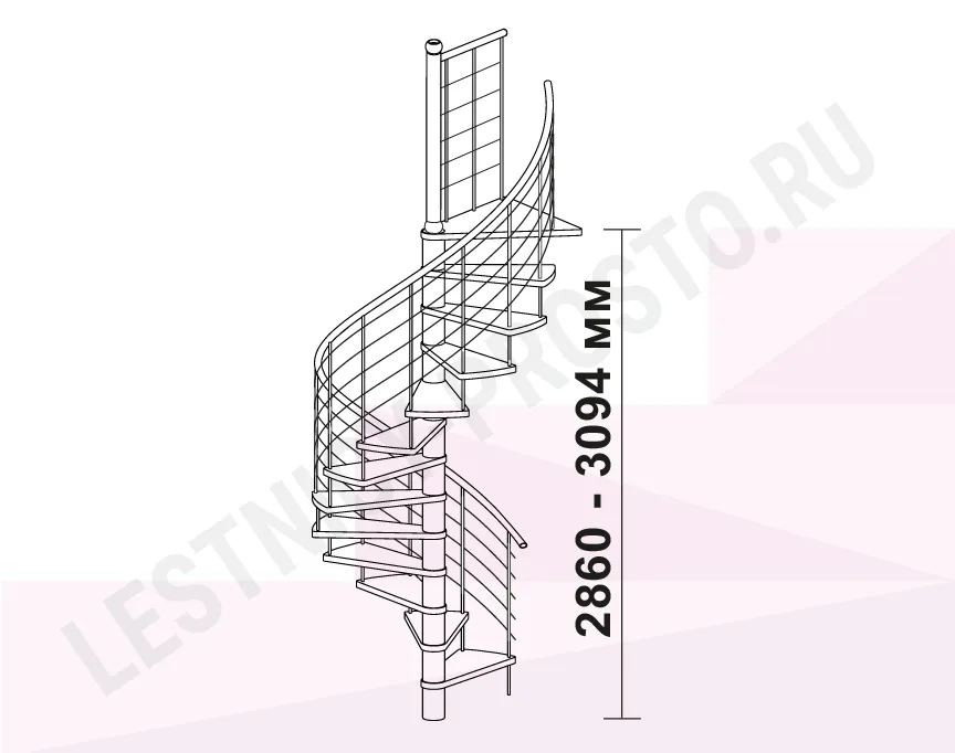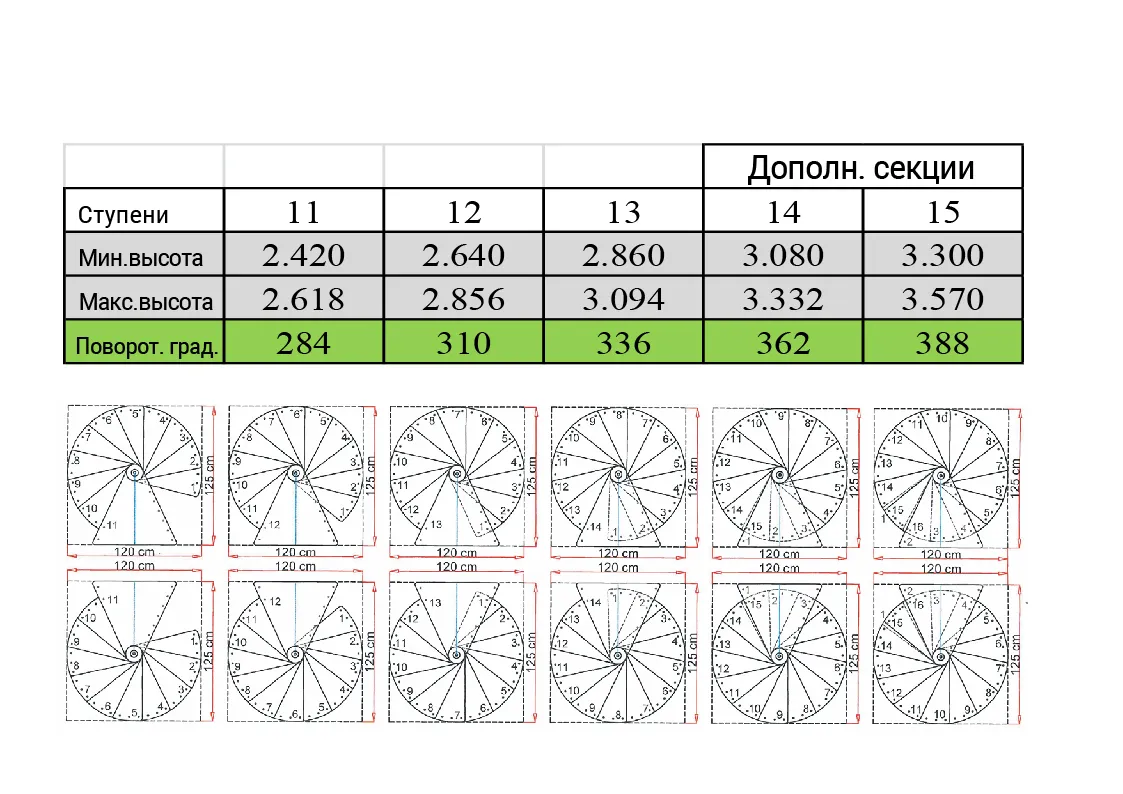 Благодаря возможности регулировать высоту шага с помощью пластиковых вставок (входят в базовый комплект), высоту лестницы можно варьировать в пределах от 2860 до 3090 мм. Кроме того, купив дополнительную секцию для этой лестницы, можно поднять высоту до 3320 мм. Ступени выполнены из сращенного дуба, покрыты износостойким твёрдым бесцветным лаком. Каркас серебристого цвета. Под заказ возможно изготовление лестницы другой расцветки.