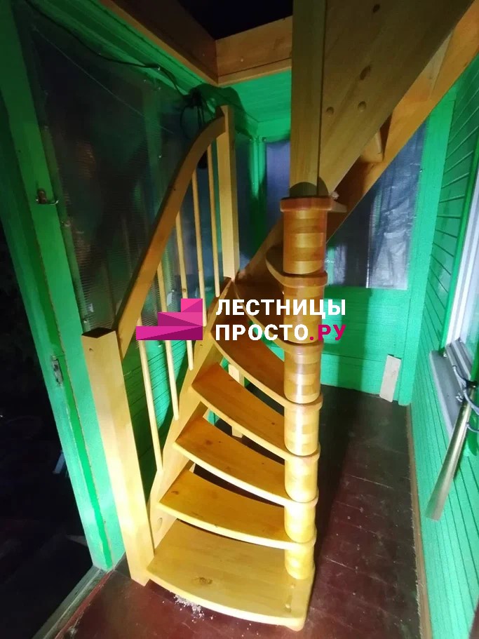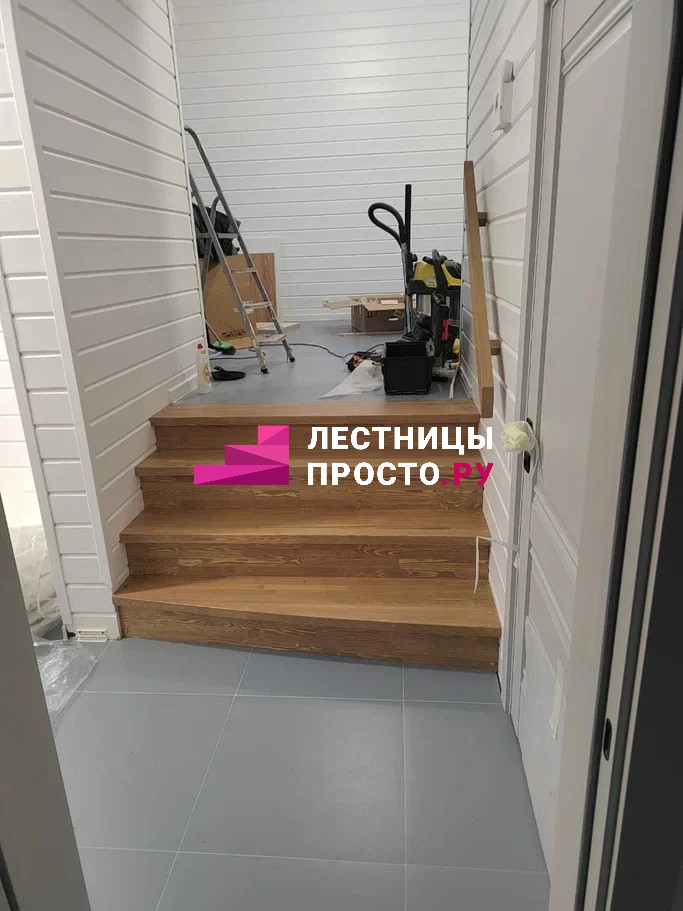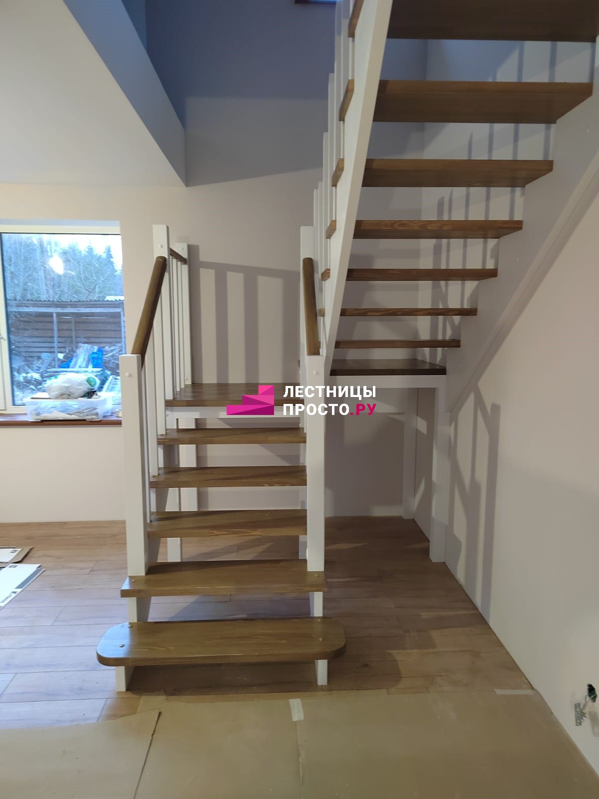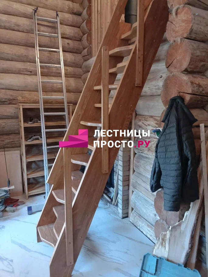 Г-образная лестница из сосны для частного дома ЛС-07/4