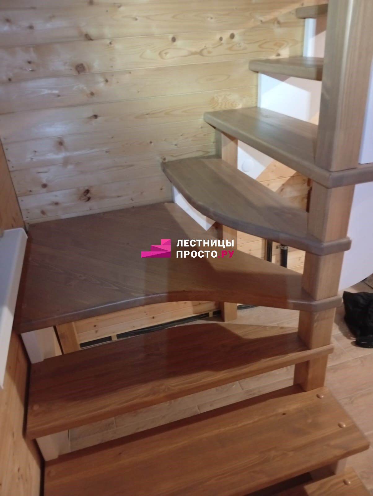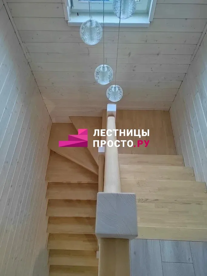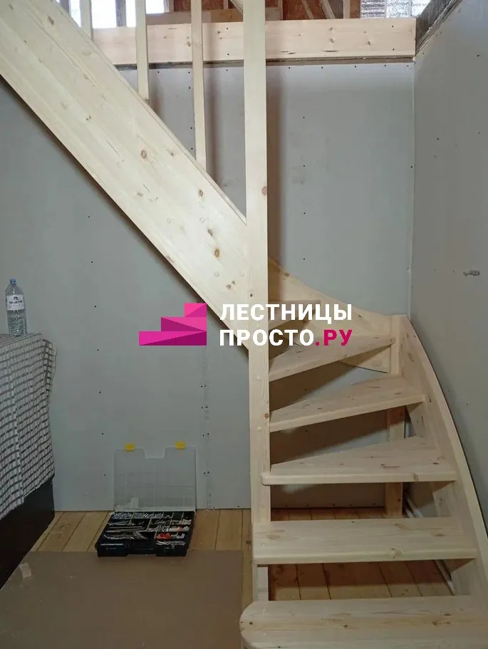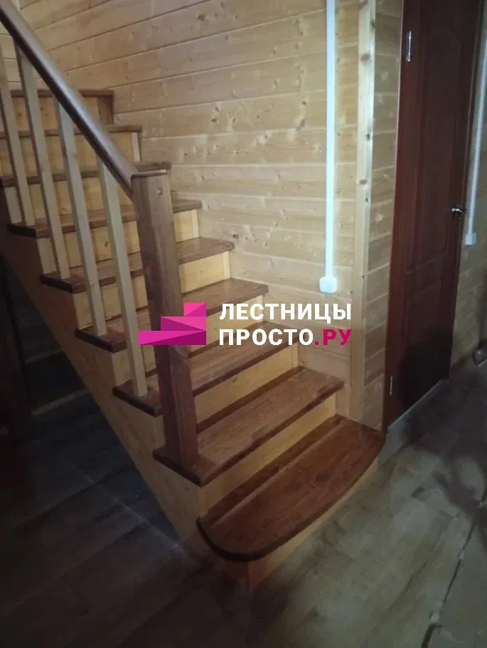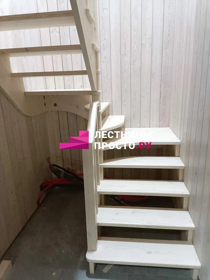 Лестница из сосны с поворотом без покраски