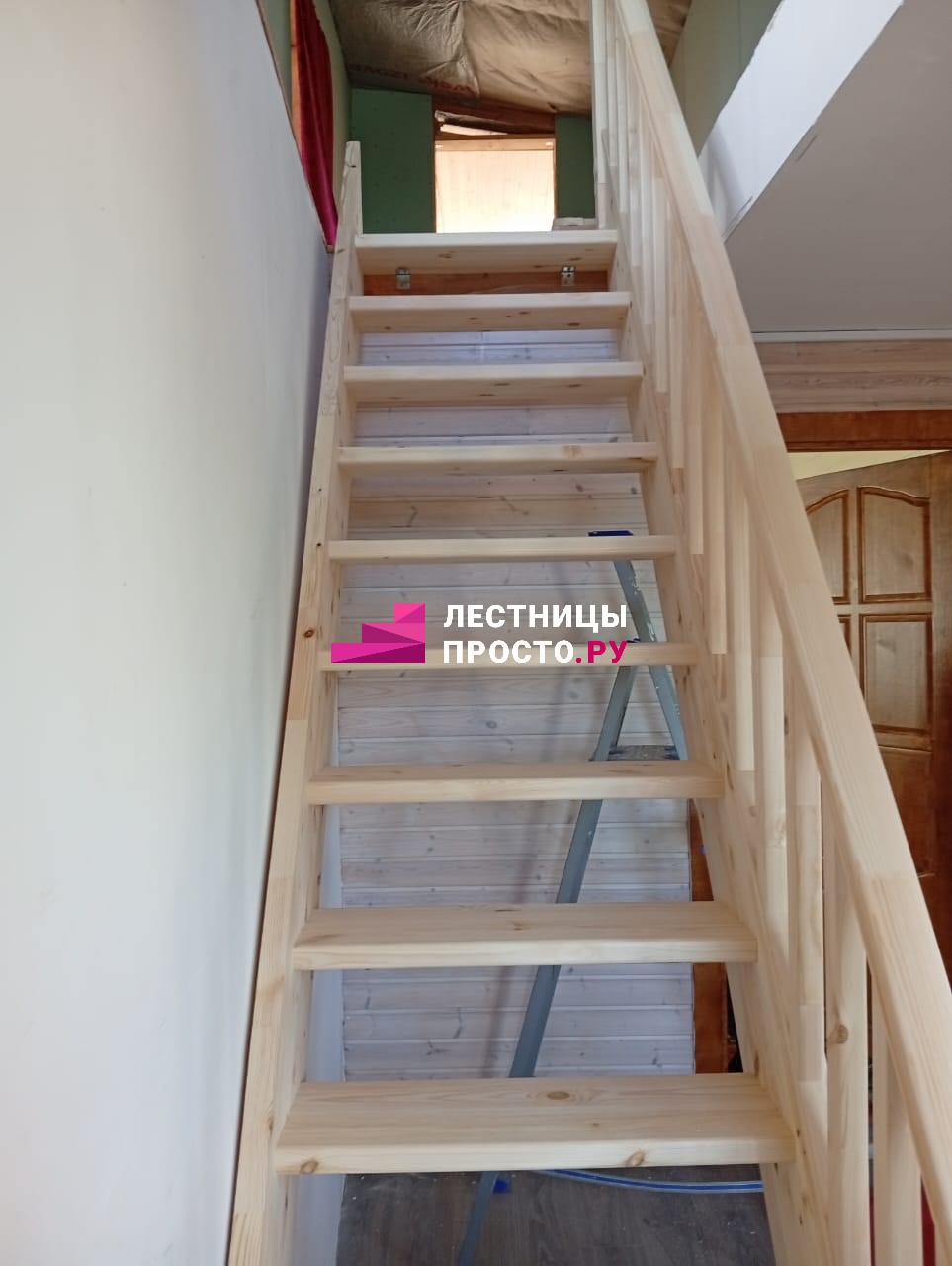 Прямая лестница из сосны без покраски